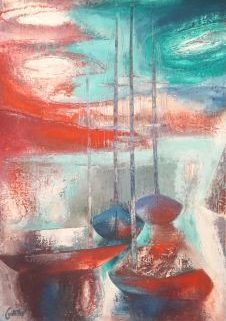 Öl/Hartfaserplatte, Segelboote, links unten signiert, ca. 60,5 x 80 cm, HR
