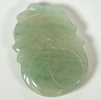China, Jade/Jadeit, geschnitzt, durchbrochen gearbeitet, vegetaler Dekor mit Pfirsich, ca. 5 x 3,5 cm