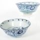 China, 18./19. Jh. Porzellan, blaumonochrome unter Glasurmalerei, u.a. Floraldekor, Dm ca. 25,5 cm, blaue Schriftzeichenmarke unter Glasur, alter Haarriss, 3x randig alt bestoßen
