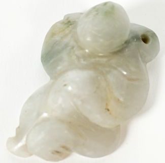 China, Jade/Jadeit, geschnitzt, durchbrochen gearbeitet, Mönch, ca. 5 x 3,5 cm