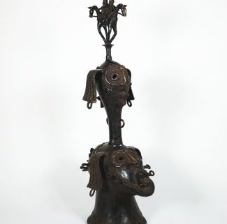 Nigeria/Yoruba, Glocke mit Figurenaufsatz, Bronze, dunkel patiniert, verlorener Guss, H ca. 68 cm
