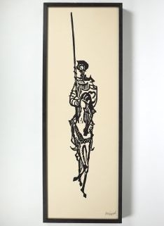 Künstler/in 1. Hälfte 20. Jh., Linolschnitt, „Don Quijote“, unten rechts sign., Blattmaß 75 x 26,5 cm, Holzleiste, leicht gebräunt