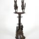 Benin, Bronze, dunkel patiniert, i d Wandung vollplastische Figuren, auch Schildkröte u Schnecke, seitlich 2 Schlangen als Griffe, H ca. 27,5 cm, herstellungsbedingte Beschädigungen