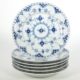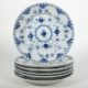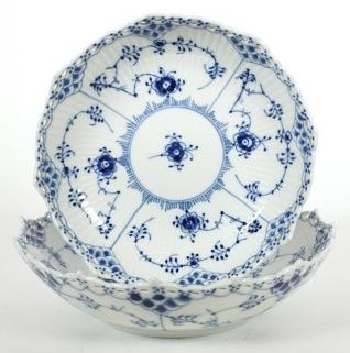 Konvolut von 2, Porzellanmanuf Royal Copenhagen, Musselmalet Vollspitze, 1x Standfuß, Dm 21 und 17,5 cm, blaue Wellen- sowie grüne Stempelmarke sowie Modellnr 1018 und 1023, je 1. Wahl