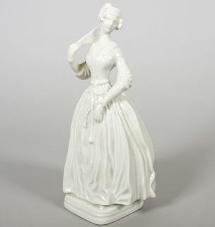 Porzellanmanuf Rosenthal, 1919-1935, weiß, Dame mit Fächer, H. 18,5 cm, grüne Stempelmarke unter Glasur