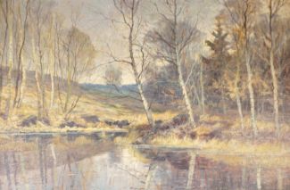 Öl/Lw., Herbstlicher Birkenwald, unten rechts sign., 66,5 x 97 cm, HR, 1x Flickendublette