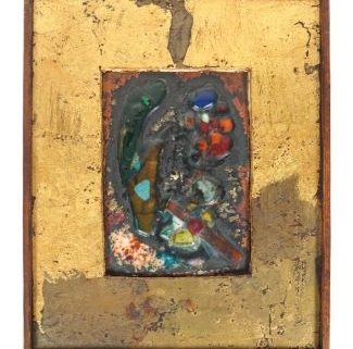 (zugeschrieben), Kupferblech mit reliefartigen Glas- und Emailleein- und aufschmelzungen, 20,5 x 14,5 cm, Künstlerrahmen, über alles 37,5 x 31 cm