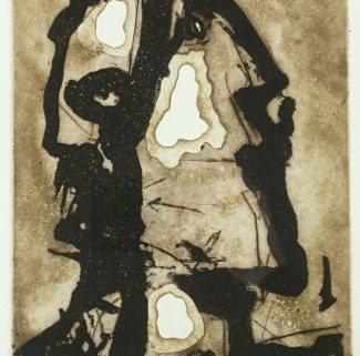 Aquatintaradierung, Abstrakte Komposition, links unten numm 43/80 und unten rechts sign., Blattmaß 39,5 x 29,5 cm, hinter Glas, Schrägschnittpassepartout, Bilderleiste