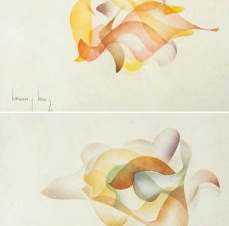 Zwei Farblithografien, Abstrakte Kompositionen, je unten links sign und dat (19)70, 12 x 16,5 und 11,5 x 19,5 cm, Passepartoutmontage