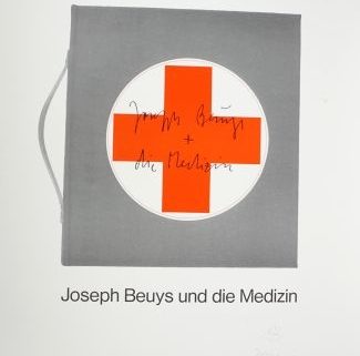 Plakat „Axel Hinrich Murken – Joseph Beuys + die Medizin“, Cppenrath Verlag/Münster, unten rechts signiert u Gefälligkeitszeichnung, ca. 60 x 41 cm, rechts oben leicht fleckig