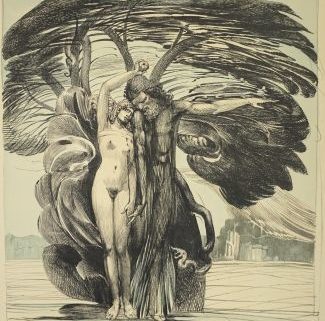 Farbradierung, „Adam + Eva“, links unten numm I/XII und rechts unten sign, Plattenmaß 48,5 x 42 cm, Passepartoutmontage