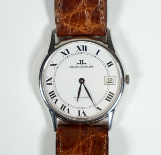 Herst Jaeger-LeCoultre/Le Sentier, Automatic, Ref.-Nr. 5001.42 sowie numm 1452638, Edelstahlgehäuse, weißes Zifferblatt Dm 2,9 cm, röm Indices, gebläute Zeiger, Datumsnische, MZ, späteres Lederarmband, Werk läuft an dazu Karton