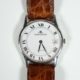 Herst Türler/Zürich, Heure Sautante, Automatic, Ref.-Nr. 3166-A, Edelstahlgehäuse, cremefarbenes Zifferblatt Dm 3 cm, arab Indices, gebläute Zeiger, Datumsnische, Sichtboden, MZ, Werk läuft an, späteres Lederarmband, dazu Karton und Etui