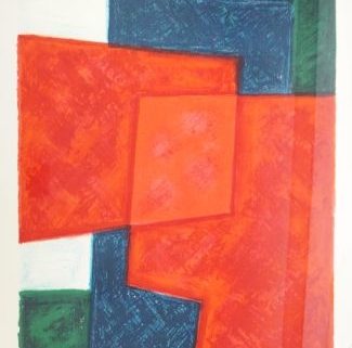 †1995 Skovshoved), Farblithografie, „Begegnung roter Flächen“, unten links numm 40/100, unten rechts sign und dat (19)92, Blattmaß 76 x 56,5 cm