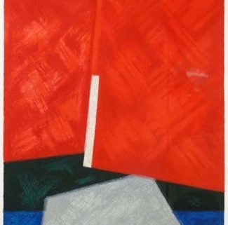 †1995 Skovshoved), Farblithografie, „Zwei rote Flächen“, unten links numm 64/150, unten rechts sign, PLattenmaß 63,5 x 50,5 cm, Passepartoutmontage