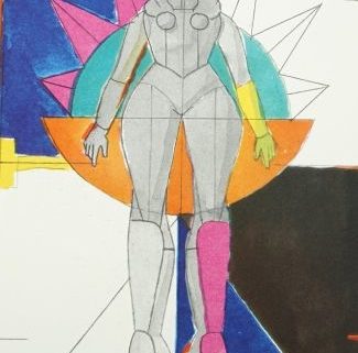 Farblithografie, Frau mit Stiefeln vor Sonnengebilde, links unten numm 8/75 und rechts unten sign., Blattmaß 38x 25,5 cm