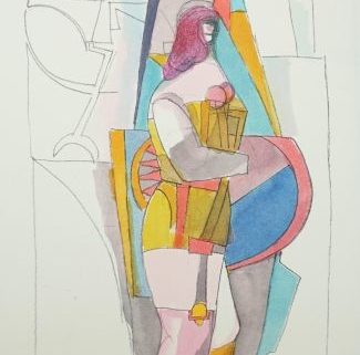 Farblithografie, Frau im Profil, links unten numm 8/75 und rechts unten sign., Blattmaß 38 x 25,5 cm