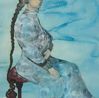 Aquarell/Papier, Frau auf Stuhl sitzend im Profil, links unten sign und dat (19)96, Blattmaß 31 x 23 cm, Passepartoutmontage