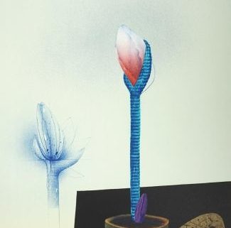 Farblithografie, „Amaryllis und Goldblatt“, links unten numm 6/90, rechts unten sign, Blattmaß 79 x 59,5 cm