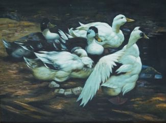 David, englischer Tiermaler, 2. Hälfte des 20. Jh., Öl/Lw, Enten am Bach, re. unten sign., 60,5 x 80 cm, HR (dieser min. best.)