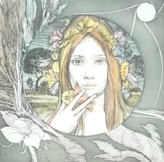 Farbradierung, „Frühling“, links unten numm 178/190 und rechts unten sign, Plattenmaß 34 x 34 cm, Passepartoutmontage