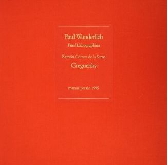 „Ramón Gómez de la Serna – Greguerías“, Mappe mit 5 Lithografien, manus presse GmbH, Stuttgart 1995, je numm 3/80 sowie sign, je Blattmaß 49,8 x 39,8 cm, roter Leineneinband
