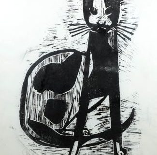 Holzschnitt, sitzende Katze, li. unten sign. u. num. 25/100, 61,5 x 44 cm, hG, Goldleiste