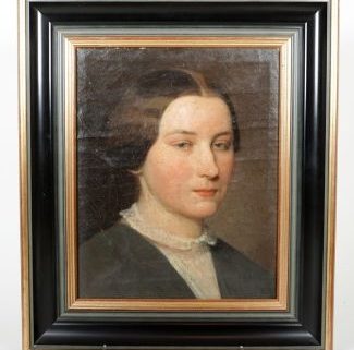 Mitte 19. Jh., Öl/Lw., Schulterstück einer jungen Frau, 35 x 28 cm, HR, Krakelee, minimale Ausbrüche in Malschicht
