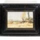 Acryl/Lw., Südeuropäisches Städtchen an Küste, 39,5 x 49cm, SR