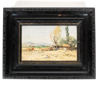 Ungarische Schule, Öl/Holz, Bäuerinnen bei der Arbeit, unten links sign., ca 20 x 28,5 cm, Lackrahmen