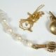 1930er/40er Jahre, zentral Perle in RG-Rahmen, flankiert von Diamantsplittern, L. 5,2 cm, MZ, Beschau, ca 4,35gr 585er RG/GG total