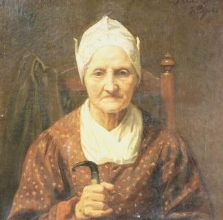 Öl/Lw., Bruststück der J. Langelaan (?), oben rechts bez und sign., 73 x 60 cm, Leinwand mit zwei kleinen Löchern, Krakelee, kleinere Fehlstellen, GR (min best)