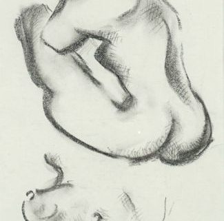 Kohle/Papier, Aktstudie von Frauenkörper, unten rechts monogrammiert, Ausschnittsmaß 27,5 x 20 cm, Passepartoutmontage