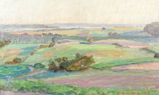 Öl/Lw, auf Karton maroufliert, Blick über flache Landschaft, rechts unten sign und dat 1913, 28,5 x 45 cm, HR