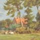 H., Öl/Lw., Bauernhof an Waldlichtung mit Personenstaffage, unten rechts sign und dat 1890, 24,5 x 50,5 cm, StuckGR