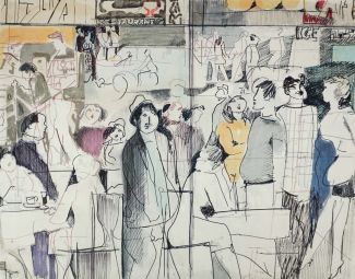 Farblithografie, Szene mit Straßencafe, unten rechts numm 33/250 und sign., Blattmaß 52 x 66 cm, Passepartoutmontage, 2x Stecknadellöcher an Ecken