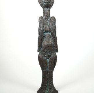 Bronze, dunkel patiniert, „Vogelfrau“ aus dem Zyklus „Gemischte Gesellschaft“, 1999, verso monogr und numm 77/100, Giessereistempel, H. 45 cm