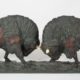 in der Art einer Wiener Bronze, patiniert, Ende 19. Jh., spielendes Mädchen auf runder Platte geschraubt, dort bez. Düsseldf Bronce Bild Giesserei GmbH, ca. 7 x 8,5 cm