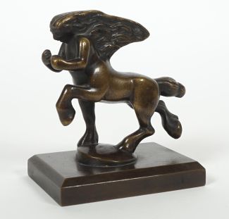 Der Centaur, Nachguss der Kühlerfigur der Dixi-Werke/Eisenach, Bronze, patiniert, auf Sockel, 9 x 8 x 5,5 cm