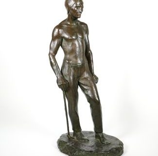 Bronze patiniert, Hauer/Bergmann auf Naturplinthe, dort signiert, bez. u dat. 1922, ca. 57,5 cm