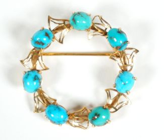 Ägypten, Türkisecabochons im Wechsel mit durchbrochen gearbeiteten Lotusblüten, Dm. Ca 3,8 cm, Beschau, ca 9,08gr 18K-GG total