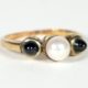 Konvolut von 2, rechteckig mit Lapislazuliplättchen bzw rund mit Perlmuttplättchen und zentralem Altschliffdiamanten (einer fehlt), à ca 0,075ct, je Beschau, zus ca 15,72gr 585er GG total