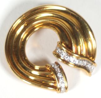rund, Form eines Schals, endig Diamantbesatz, Dm 3,2 cm, ca 9,53 750er GG (getestet) total