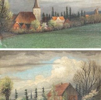 westfälischer Monogrammist, Öl/Lw., maroufliert, Nienberge und Kotten bei Kinderhaus, 1x rechts unten monogr und dat (1)910, 26,5 x 34,5 und 27 x 35 cm, je GR