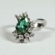 2fach gekantete Schiene, zentral Saphir in Ovalschliff sowie 4 weitere in Navetteschliff, 8 in Größe variierende Brillanten, à max 0,1 ct, je Krappenfassung, Beschau, ca 7,07gr 750er WG total, Ringgröße 54