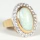 zentral Opalcabochon-Triplette, gerahmt von 19 Brillantsplittern, zus ca 2ct, je Krappenfassung, Beschau, ca 6,73gr 585er WG total, Ringgröße 49