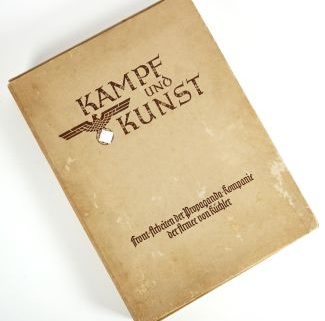 Kampf und Kunst, Frontarbeiten der Propaganda-Kompanie der Armee von Küchler, PK 621, 1941, 60 Druckgrafiken der Künstler K. Martin Lünstroth, Kurt Krohne u Heinz Raebiger, in Halbleinenmappe, ca. 39 x 29 cm, Lagerspuren