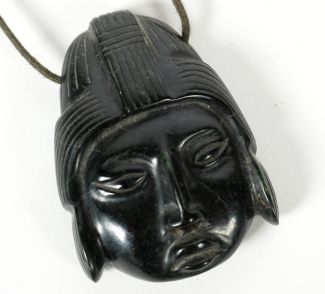 Olmeken/Maya, Serpentinit poliert, geschnitzt, ca. 7,5 x 5,5 cm, späterer Faden