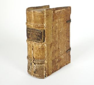 Johannes, D. Ioannis Chrysostomi D. Ioannis Chrysostomi archiepiscopi Constantinopolitani Enarrationes(…), Verl. Johannes Steel, Antwerpen 1556, Doppelseitenzahl 269, geprägter Pappeinband (dieser besch), Reste von Schließen, 18 x 12,5 cm, altersbedingte Gebrauchsspuren gebräunt