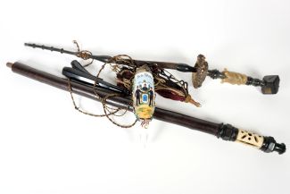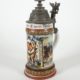 1871-1918, Reservistenpfeifenkopf, 7. Comp. 1. Nass. Inft. Regt. No. 87 Mainz 1906-08, Reservist Walter, Porzellan, polychrom, reliefierter Eichenlaubdekor, Pickelhaube als Pfreifendeckel, Metall, L ca. 17 cm, dazu weitere Teile der Pfeife, diese teils beschädigt